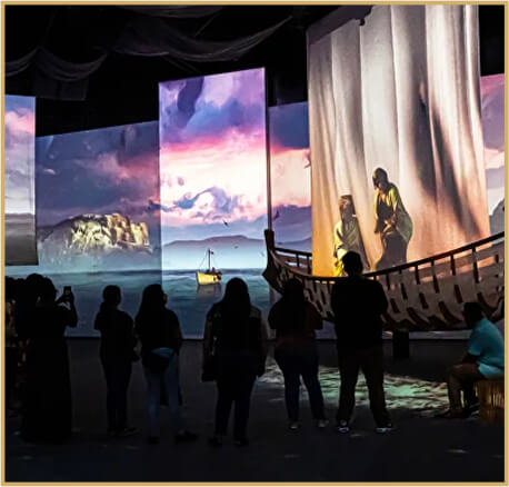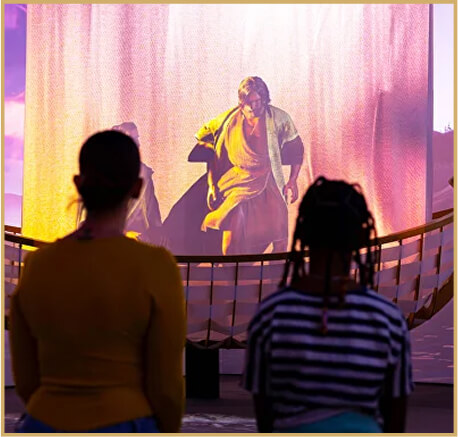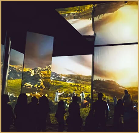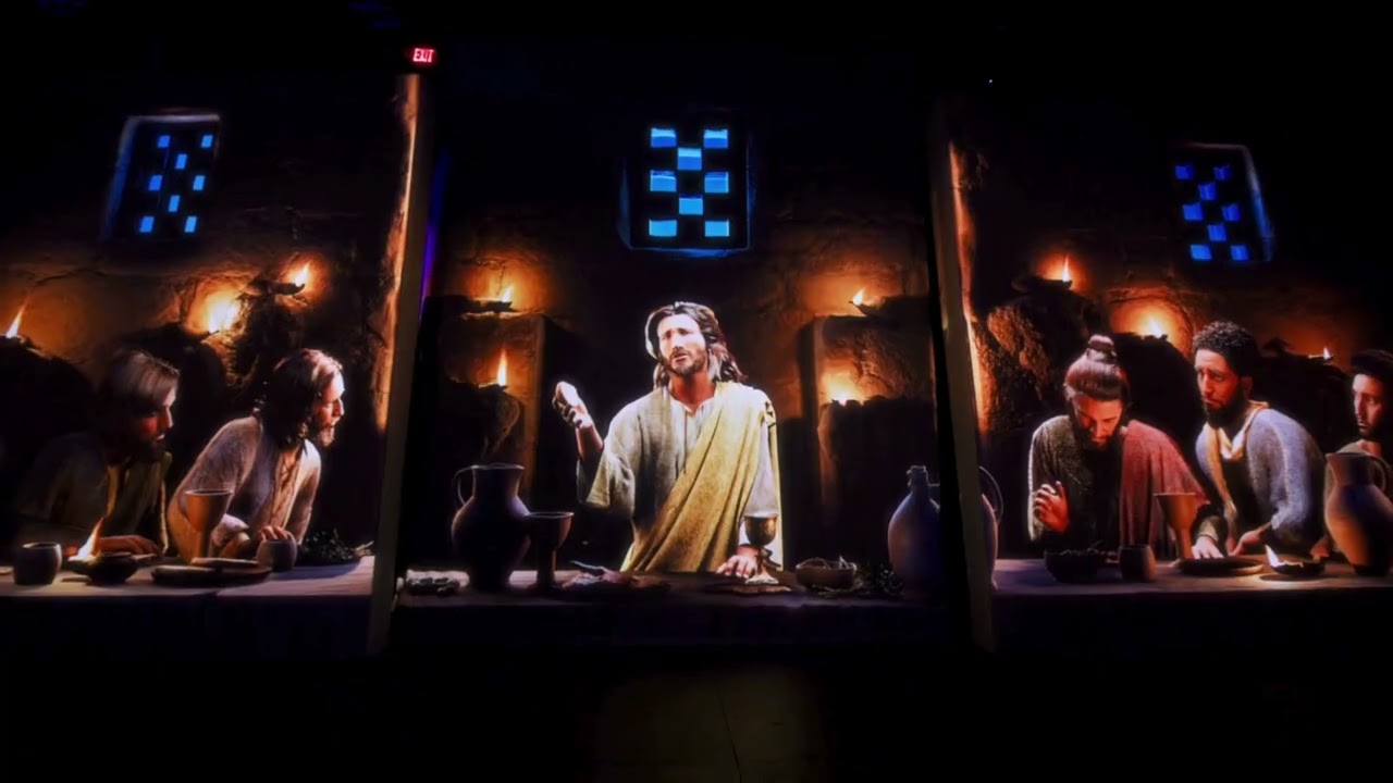 Projeção Mapeada: Cenários visuais impressionantes que dão vida aos momentos mais marcantes do Novo Testamento.